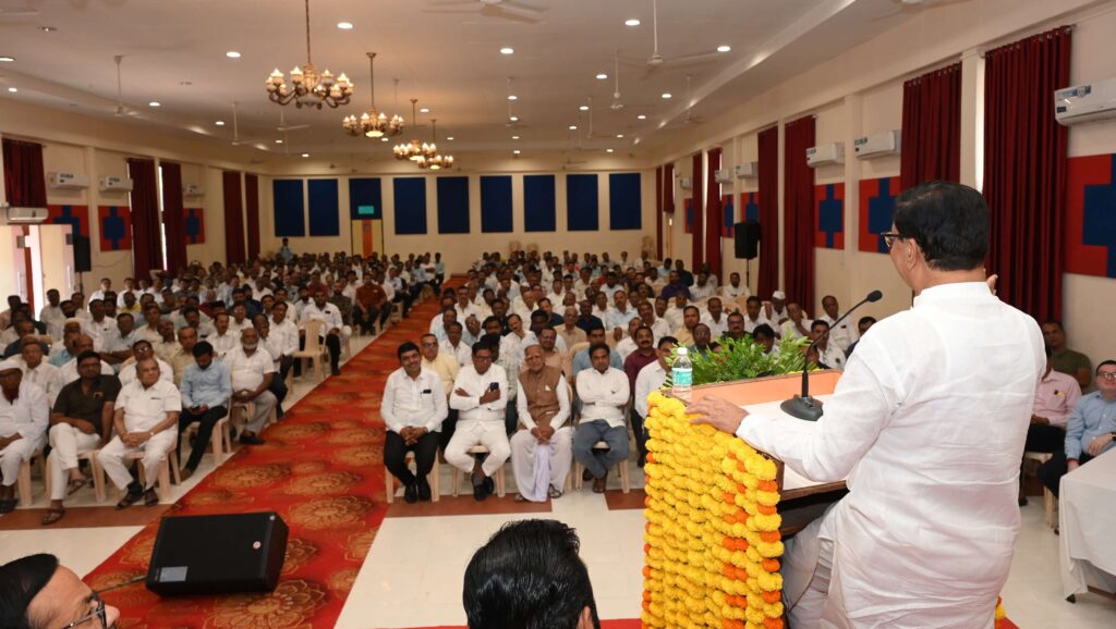 मालपाणी लॉन्स येथे व्यापारी बांधवांशी संवाद या कार्यक्रमात ते बोलत होते .यावेळी व्यासपीठावर मा आमदार डॉ. सुधीर तांबे, डॉ संजय मालपाणी, डॉ जयश्रीताई थोरात, रणजीतसिंह देशमुख ,व्यापारी असोसिएशनचे अध्यक्ष योगेश कासट ,सुधाकर जोशी, निलेश जाधव, प्रकाश कलंत्री, ओंकार भंडारी, सोमेश्वर दिवटे ,के.के थोरात ,सुभाष ताजने ,कल्पेश मेहता, कैलास सोमानी, राणी प्रसाद मुंदडा आदींसह संगमनेर शहरातील विविध व्यापारी मोठ्या संख्येने उपस्थित होते.