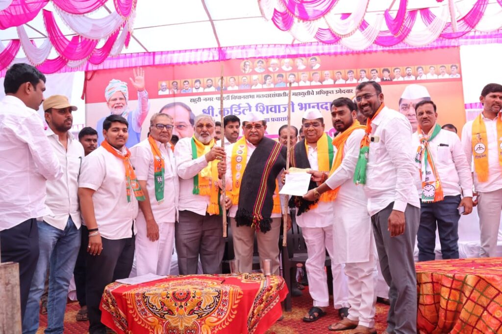 त्याचबरोबर अण्णासाहेब बाचकर धनगर समाजाचे नेते बापूसाहेब वडितके यांचीही उपस्थिती होती. राहुरी तालुक्यामध्ये तनपुरे कुटुंबाकडून धनगर समाजाच्या लोकांना दमबाजी करण्याचा प्रकार सुरू आहे, या दमबाजीला धनगर समाजाने घाबरू नये. आपण पूर्ण ताकतीने शिवाजीराव कर्डिले यांच्या पाठीमागे उभे राहून त्यांना निवडून आणावे असे आवाहन अखिल भारतीय धनगर समाज विकास परिषदेचे प्रदेशाध्यक्ष दत्तात्रय खेमनर यांनी केले. यावेळी बारागाव नांदूर, वावरथ जांभळी आणि राहुरी परिसरातील मोठ्या प्रमाणात धनगर समाज उपस्थित होता. भाजप महायुती सरकारने धनगर समाजाला न्याय दिलेला आहे. अहिल्यादेवी घरकुल योजना त्याचबरोबर नगर जिल्ह्याचे नामांतर करून आहिल्यानगर केले. धनगरांसाठी शासनाच्या विविध योजना सुरू केल्या, महायुती सरकार नेहमी धनगर समाजाच्या सोबत आहे असे महसूल मंत्री राधाकृष्ण विखे पाटील यांनी सांगितले. राहुरी तालुक्यातील धनगर समाज शिवाजीराव कर्डिलेना प्रचंड मताने निवडून आणणार असा निर्धार समाजाने केला आहे. धनगर समाजाला दमबाजी करणारांना या निवडणुकीत जागा दाखवून देऊ अशी शपथ धनगर समाजाने घेतली आणि पारंपरिक पद्धतीने घोंगडी-काठी देऊन महसूलमंत्री राधाकृष्ण विखे आणि शिवाजी कर्डिलेंचा सत्कार केला.