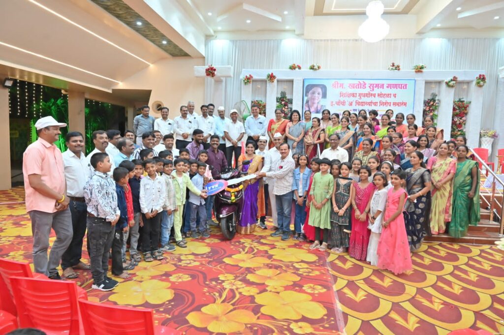 अकोले तालुक्यातील नवलेवाडी येथील जिल्हा परिषदेच्या प्राथमिक शाळेच्या शिक्षका सुमन गणपत खतोडे यांचा गुणगौरव सोहळा पालकांनी आयोजित केला. त्यामध्ये विध्यार्थी व पालक यांनी शिक्षिकेला चक्क स्कुटी दुचाकी भेट दिली आहे.