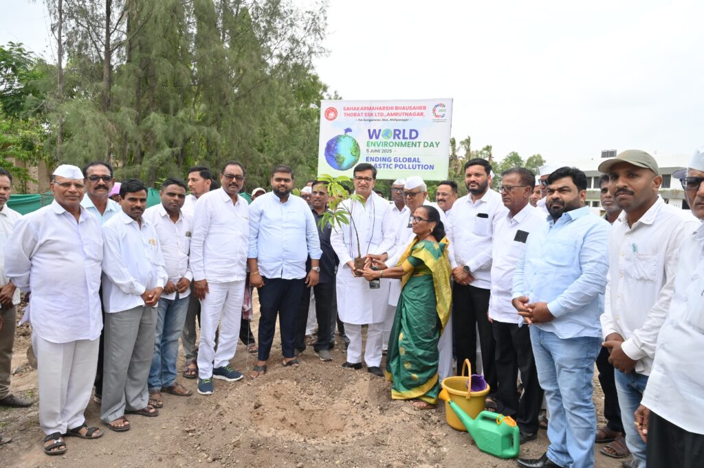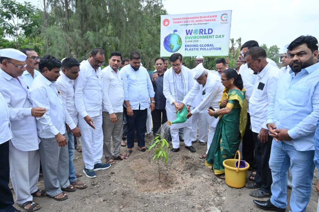जागतिक पर्यावरण दिनानिमित्त दंडकारण्य अभियानांतर्गत सहकारमहर्षी भाऊसाहेब थोरात सहकारी साखर कारखाना परिसरामध्ये 201 आंबा वृक्षांचे तसेच तालुक्यात विविध ठिकाणी वृक्षांचे रोपण करण्यात आले. यावेळी मा.मंत्री बाळासाहेब थोरात, कारखान्याचे व्हाईस चेअरमन पांडुरंग घुले, रणजितसिंह देशमुख, संपतराव डोंगरे, सुधाकर जोशी, कार्यकारी संचालक जगन्नाथ घुगरकर, आदिवासी सेवक प्रा.बाबा खरात, कारखान्याचे संचालक संपतराव गोडगे, तुषार दिघे, विनोद हासे, रामदास धुळगंड,विलास शिंदे, रामनाथ कुटे, नवनाथ आरगडे, विजय राहणे,अरुण वाकचौरे, योगेश भालेराव,अंकुश ताजने, दिलीप नागरे,सौ.लता बाबासाहेब गायकर,सौ.सुंदराबाई रावसाहेब दुबे, आनंद वर्पे, बाळासाहेब सावंत, बाळासाहेब फापाळे, किरण कानवडे, शिवाजी खुळे, रामनाथ शिंदे आदींसह विविध कार्यकर्ते उपस्थित होते.