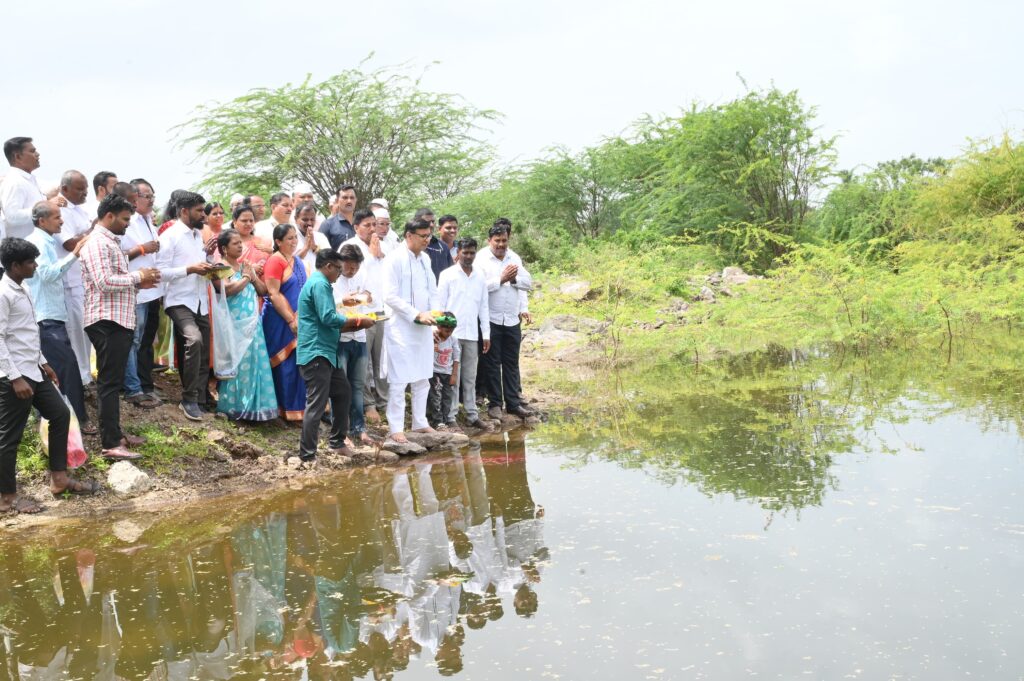 घुलेवाडी येथे जलपूजन प्रसंगी कार्यक्रमात ते बोलत होते.यावेळी सरपंच सौ.निर्मला राऊत, नवनाथ आरगडे, भाऊसाहेब पानसरे,तंटामुक्ती अध्यक्ष बाळासाहेब पानसरे, भास्कर पानसरे,सर्व ग्रामपंचायत सदस्य, ज्येष्ठ कार्यकर्ते व युवक कार्यकर्ते तसेच घुलेवाडी वि.का.सेवा सोसायटीचे चेअरमन, व्हा.चेअरमन, पतसंस्था, तंटामुक्ती व गावातील सर्व युवक संघटनांचे पदाधिकारी या पाण्यासाठी मेहनत घेतलेले सर्व शेतकरी व लाभार्थी मोठ्या संख्येने उपस्थित होते. याप्रसंगी गावातील तरुणांनी वाजत गाजत माजीमंत्री बाळासाहेब थोरात यांची भव्य मिरवणूक काढून भेंडाळे बंधारा येथे साडीचोळी अर्पण करून पाण्याचे पूजन केले.