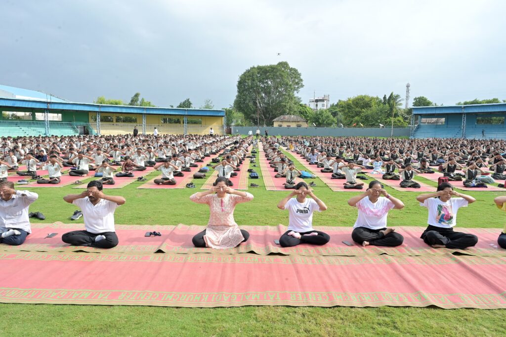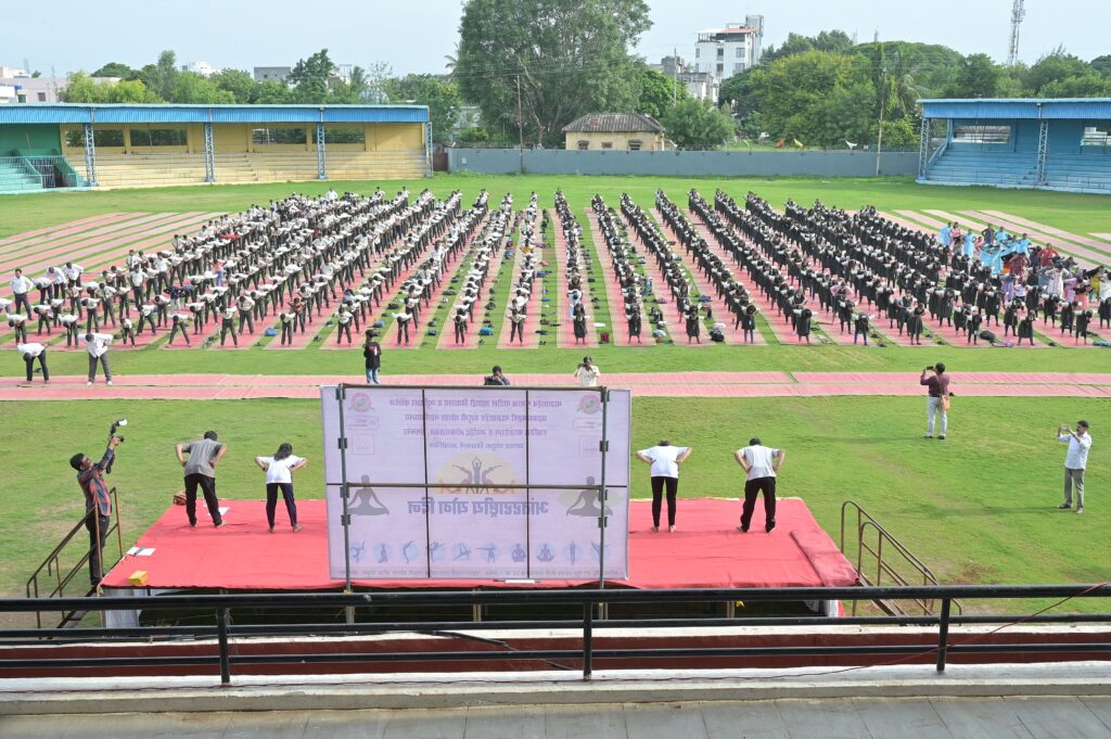 सहकारमहर्षी भाऊसाहेब थोरात क्रीडा संकुल येथे सह्याद्री विद्यालय व ज्युनिअर कॉलेज एकविरा फाउंडेशन आणि जयहिंद लोक चळवळ यांच्या संयुक्त विद्यमाने आंतरराष्ट्रीय योग दिन साजरा झाला. यावेळी मा.आ.डॉ.सुधीर तांबे, कॅन्सरतज्ञ डॉ.जयश्रीताई थोरात, कारखान्याचे व्हाईस चेअरमन पांडुरंग पा घुले, सह्याद्री संस्थेचे रजिस्टार उमेश डोंगरे, शिक्षण विस्तार अधिकारी सौ.नंदा वलवे, सह सेक्रेटरी आचार्य बाबुराव गवांदे, ॲड सुहास आहेर, प्राचार्य के.जी. खेमनर, योगशिक्षक किशोर देशमुख, जालिंदर नाईक, भारत शिंदे, उपप्राचार्य प्रा. संजय सुरसे, पर्यवेक्षक ज्ञानदेव पवार,सौ संगीता रणशूर आदींसह सर्व शिक्षक व युवक कार्यकर्ते मोठ्या संख्येने उपस्थित होते.
