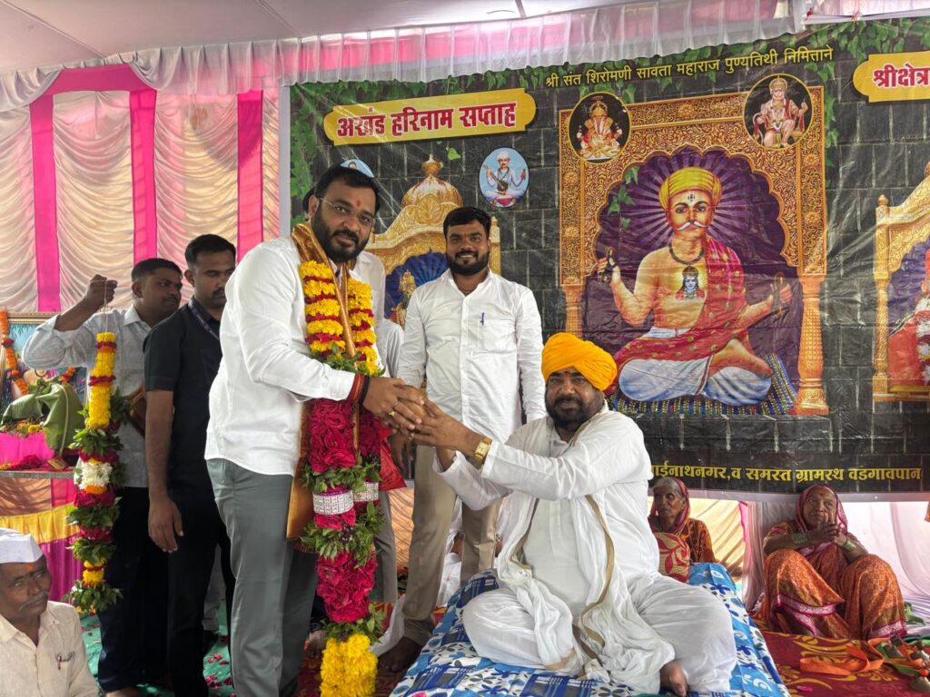 संगमनेर तालुक्यातील वडगाव पान येथील गडगे मळा (साई नगरमध्ये ) श्री संत शिरोमणी सावता महाराज पुण्यतिथीनिमित्त आयोजित अखंड हरिनाम सप्ताहाची सांगता रामायणाचार्य रामराव महाराजढोक यांच्या काल्याच्या कीर्तनाने व दहीहंडी फोडून करण्यात आली. या सांगता सोहळ्यात आ. खताळ बोलत होते. याप्रसंगी वडगाव पानचे सरपंच श्रीनाथ थोरात, मदन महाराज पारख, वसंत महाराज गुंजाळ, केदार भंडारी, अण्णासाहेब सदाफळ, ग्रामपंचायत सदस्य सुमित काशीद, गणेश काशीद, समीर मोरे यांच्यासह वडगाव पान परिसरातील भावीक मोठ्या संख्येने उपस्थित होते.संगमनेर तालुक्याच्या वतीने आमदार अमोल खताळ यांच्या हस्ते रामायणाचार्य रामराव महाराज ढोक यांचा सन्मान करण्यात आला तर ढोक महाराज यांच्या हस्ते आ. अमोल खताळ यांचाही सन्मान करण्यात आला.