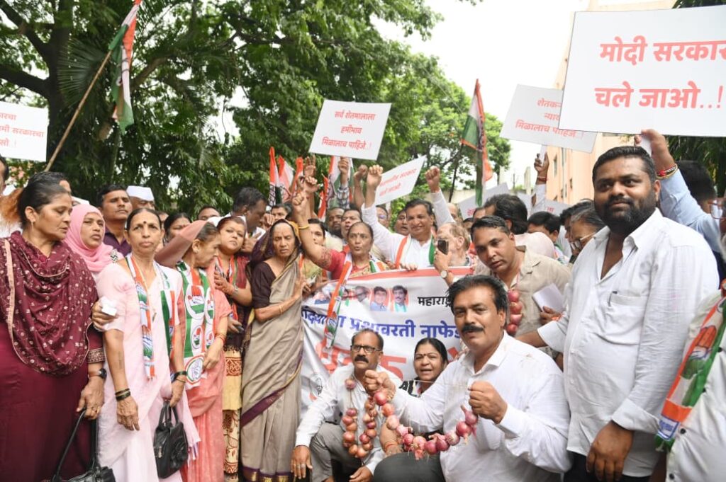 नाशिक येथे काँग्रेस कमिटीच्या वतीने नाफेड भवनावर भर पावसामध्ये भव्य धडक मोर्चा काढण्यात आला. यावेळी खासदार डॉ शोभाताई बच्छाव, अर्थशास्त्र विभाग प्रमुख विश्वास उठगे, प्रदेश काँग्रेसचे राजाराम पानगव्हाणे ,शरद आहेर ,जिल्हाध्यक्ष शिरीष कोतवाल, प्रा .ज्ञानेश्वर गायकवाड, मोहन तिवारी, रमेश कहांडूळे, शहराध्यक्ष आकाश छाजेड, निर्मलाताई खरडे, आदिवासी विभागाचे लकी जाधव, शहराध्यक्ष स्वाती जाधव ,युवा काँग्रेसचे स्वप्निल पाटील, संतोष ठाकूर, किसान सेलचे संतू पाटील जायभाये, अल्तमस शेख, गौरव पानगव्हाणे, गौरव सोनार ,तनवीर तांबोळी आदींसह विविध मान्यवर उपस्थित होते.