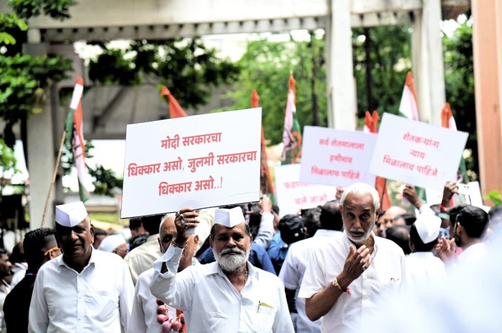 भर पावसामध्ये माजी मंत्री बाळासाहेब थोरात यांच्या नेतृत्वाखाली काँग्रेस कार्यकर्त्यांनी धडक मोर्चा काढला. यावेळी केंद्र व राज्य सरकारच्या विरोधात कार्यकर्त्यांनी जोरदार घोषणाबाजी केली. भर पावसात मोर्चात बोलताना माजी कृषिमंत्री बाळासाहेब थोरात म्हणाले की, स्वर्गीय यशवंतराव चव्हाण यांना बिनविरोध निवडून देणारा हा नाशिक जिल्हा आहे. क्रांतीकारकांचा या जिल्ह्यातील शेतकऱ्यांचे आंदोलन राज्यात नव्हे तर देशात पोहोचले आहे. नाफेड मध्ये मोठा भ्रष्टाचार सुरू आहे .कोणाच्या आशीर्वादाने हा भ्रष्टाचार चालतो आहे याची चौकशी झाली पाहिजे.