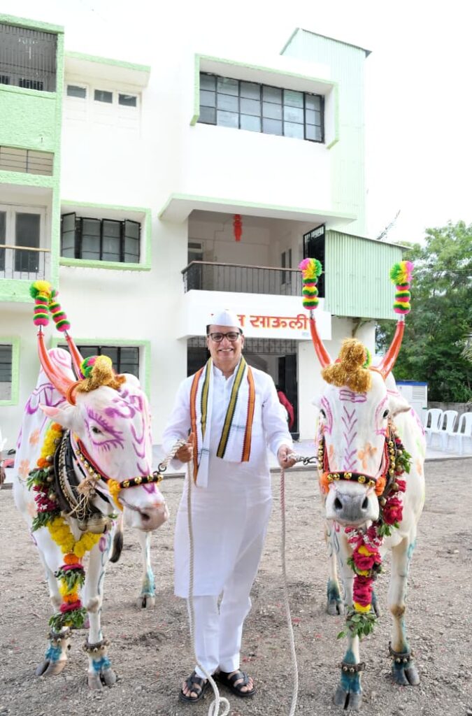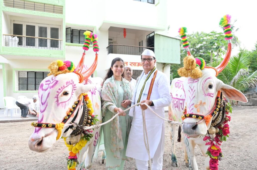 जोर्वे येथील संत सावली निवासस्थानी पारंपारिक पद्धतीने बैल पोळा मोठ्या उत्साहात साजरा करण्यात आला यावेळी सौ कांचनताई थोरात, कॅन्सर तज्ञ डॉ जयश्रीताई थोरात यांसह जोरवे येथील ग्रामस्थ व थोरात परिवार मोठ्या संख्येने उपस्थित होता.