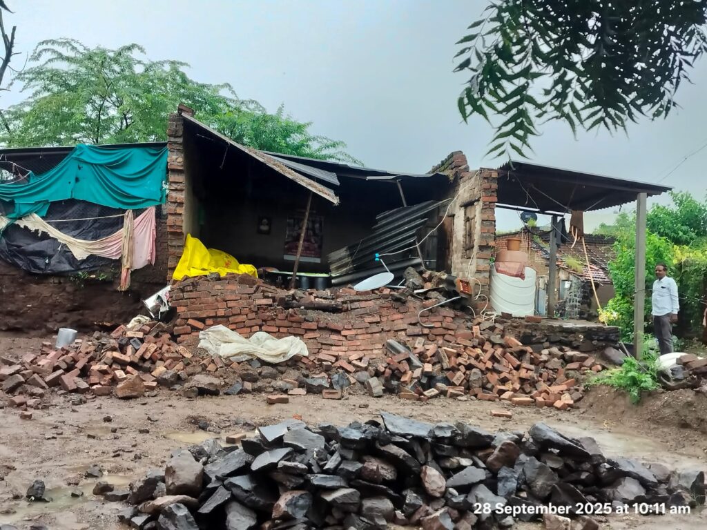 या दुर्घटनेत घराच्या पूर्व-पश्चिम बाजूच्या भिंती, सिमेंटच्या पत्र्याचे छत कोसळले असून संसारोपयोगी साहित्य कपडे, धान्य आणि किराणा साहित्याचं नुकसान झालंय.
