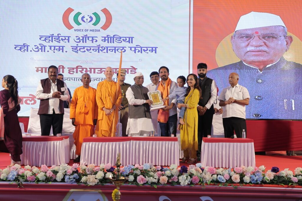 या वेळी व्यासपीठावर व्हॉइस ऑफ मीडियाचे संस्थापक अध्यक्ष संदीप काळे, परमपूज्य लोकनाथ स्वामी महाराज, महाराष्ट्र प्रदेशाध्यक्ष अनिल मस्के, उपाध्यक्ष अजित कुंकू, युवा उद्योजक राणा सूर्यवंशी यांसह अजित कुंकूलोळ, मुख्य संयोजक गोरक्षनाथ मदने, राज्य विंग प्रमुख अमोल मतकर, अहिल्यानगर जिल्हाध्यक्ष बाळासाहेब गडाख अनेक मान्यवरांची उपस्थिती होती.