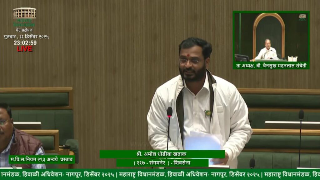 पुणे–नाशिक सेमी-हायस्पीड रेल्वे हा पुणे, अहिल्यानगर आणि नाशिक या तीनही जिल्ह्यांच्या सर्वांगीण विकासासाठी अत्यंत महत्त्वाचा प्रकल्प असून, अनेक वर्षांपासून तो प्रलंबित आहे. या पार्श्वभूमीवर मार्ग निश्चितीचा निर्णय विलंबात ठेवणे म्हणजे विकासाला अडथळा निर्माण करणे असल्याचे ते म्हणाले. संगमनेर मार्ग हा लोकाभिलाषेचा व भौगोलिकदृष्ट्या योग्य पर्याय असल्याचाही त्यांनी पुनरुच्चार केला. अधिवेशनादरम्यान शासनाने प्रकल्पाच्या अंतिम मार्गाबाबत आणि जीएमआरटीशी संबंधित तांत्रिक समस्यांच्या निराकरणासंबंधी स्पष्ट व ठोस भूमिका व्यक्त केली पाहिजे अशी ठाम मागणी करून आमदार अमोल खताळ यांनी या महत्त्वाच्या प्रश्नाकडे विधानसभेचे लक्ष वेधले.