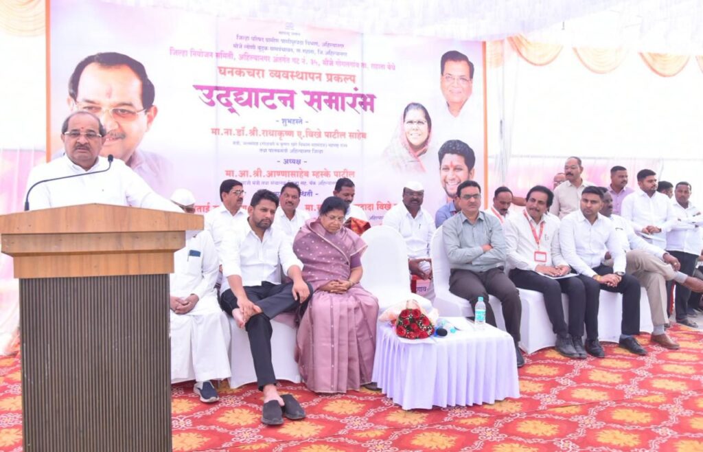 सुमारे चार कोटी रुपयांच्या खर्चातून विकसित करण्यात आलेला अत्याधुनिक स्वरुपात निर्माण झालेला घनकचरा प्रकल्प ग्रामपंचायत स्तरावर उभारलेला पहीला प्रकल्प आहे. ग्रामीण भागात केलेला पहीला यशस्वी प्रकल्प असून विकसित होत असलेल्या गावांसाठी एक आदर्श माॅडेल असल्याचा उल्लेख मंत्री विखे पाटील यांनी केला.