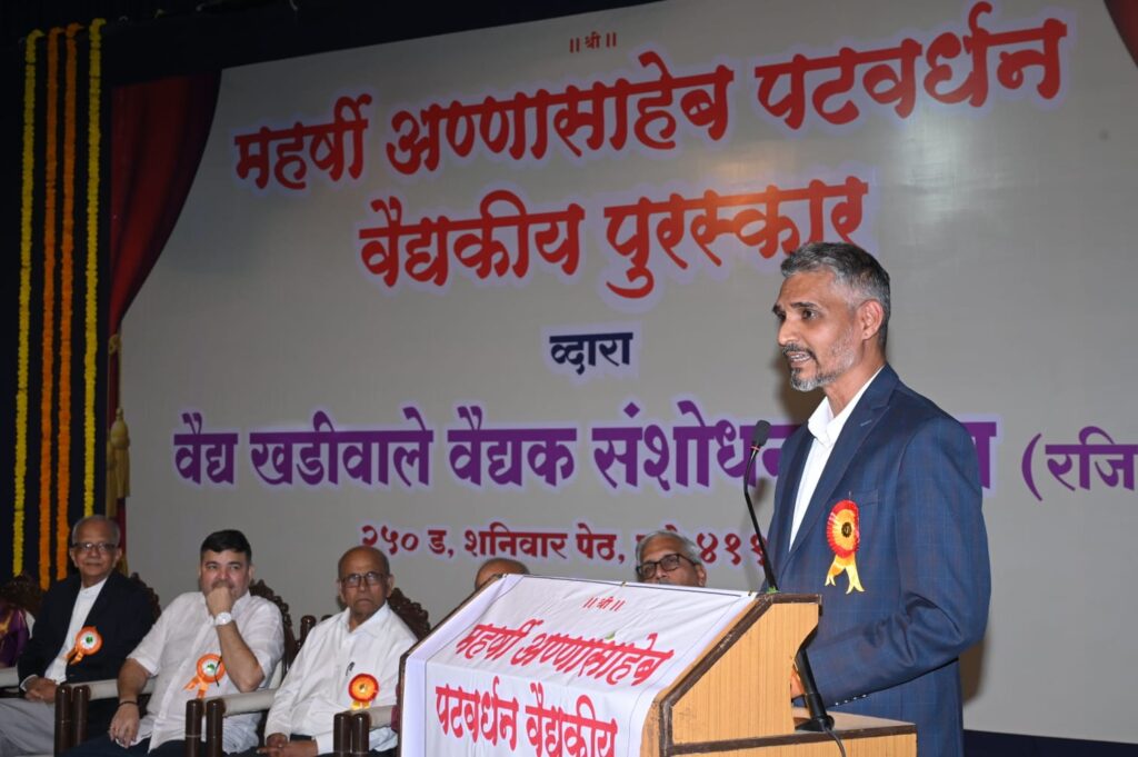 महाराष्ट्रातील आयुर्वेद व रसशास्त्र विषयातील अत्यंत मानाचा समजला जाणारा ‘वैद्य खडीवाले वैद्यक संशोधन संस्था’ व ‘महर्षी आण्णासाहेब पटवर्धन वैद्यकीय पुरस्कार समिती’ यांचेतर्फे यावर्षीचा “वैद्य द.वा.शेंड्ये रसौषधी पुरस्कार” यावर्षी मूळचे राहुरी येथील डॉ.संजय भाऊसाहेब खेडेकर यांना महाराष्ट्रातील ज्येष्ठ रंगकर्मी “श्री.प्रशांतजी दामले’ यांच्या हस्ते पुणे येथील टिळक स्मारक मंदिर येथे आयुर्वेद क्षेत्रातील विविध मान्यवरांच्या उपस्थितीत प्रदान करण्यात आला.