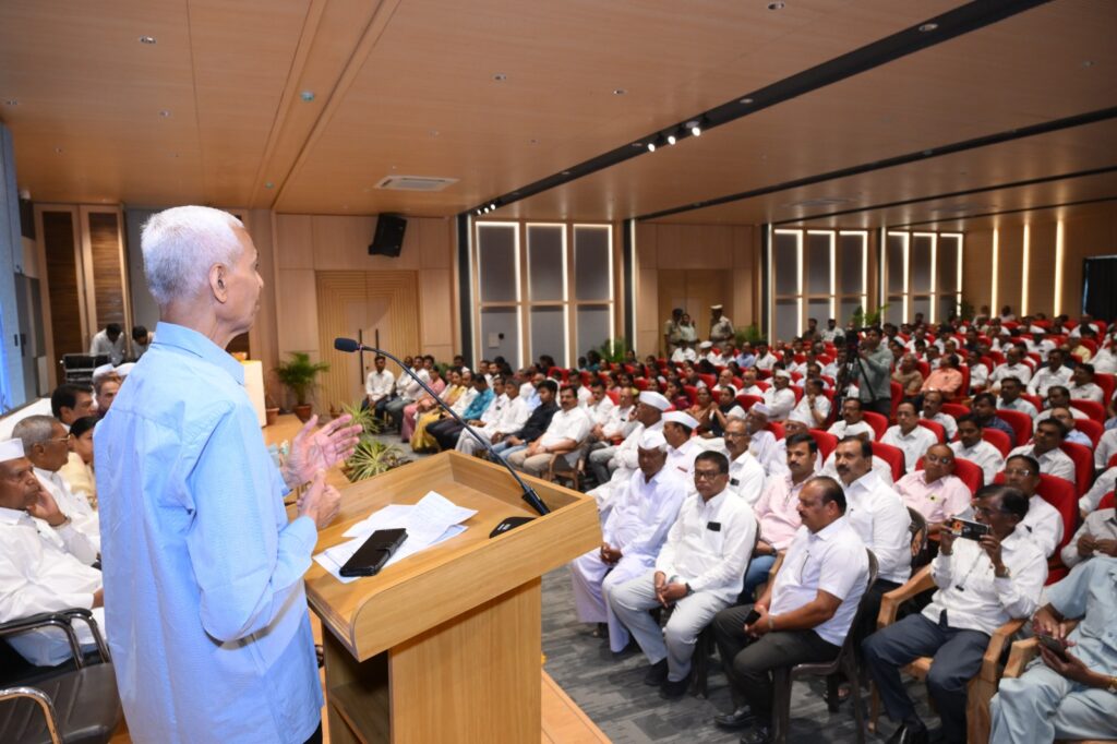 तर मा.आ.डॉ.तांबे म्हणाले की, दुष्काळी तालुका ते विकसित तालुका हा सहकारमहर्षी भाऊसाहेब थोरात यांच्या दूरदृष्टीतून निर्माण झाला. नैतिकता हा त्यांच्या कार्याचा पाया आहे. नैतिकतेवर आधारित संगमनेरचा सहकार असल्यामुळे तो आज देशाला दिशादर्शक ठरत आहे. शेती, शिक्षण, सहकारातून संगमनेर बरोबरच राजहंस हा विश्वासाचा ब्रँड त्यांनी तयार केला. सर्वसामान्यांच्या आरोग्याची काळजी घेण्याकरता एसएमबीटी सेवाभावी हॉस्पिटलच्या रूपाने मोठी स्वप्न पाहिले आज ज्या ठिकाणाहून हजारो नागरिक उपचार घेत आहेत. या कार्यक्रमाचे आभार प्रदर्शन पांडुरंग पा. घुले यांनी केले. यावेळी अमृत उद्योग समूहातील विविध संस्थांचे पदाधिकारी अधिकारी कार्यकर्ते शेतकरी सभासद मोठ्या संख्येने उपस्थित होते.